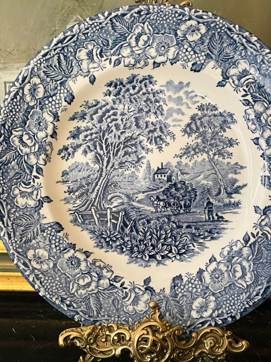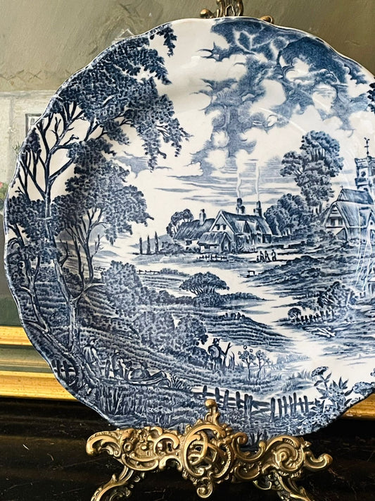 England Blue Pottery Plate by Staffordshire – “Playtime” 10 Inch Vintage Collectible