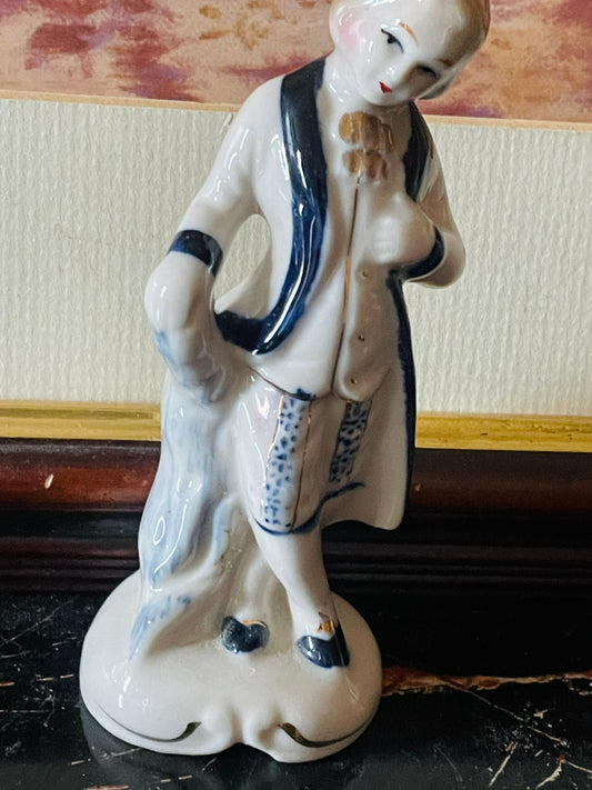 Antique German Porcelain Blue & White Man Figurine Blue Pottery Home Decor