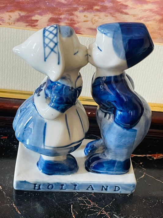 Holland Collectible Delft Blue Figurine – Boy & Girl Kissing (Vintage Pottery)