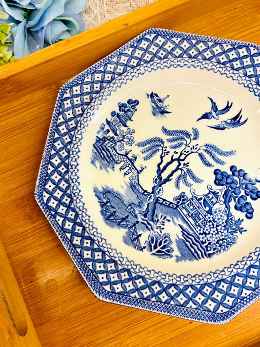 Vintage Blue Willow Octagonal Plate – Porcelain Dish