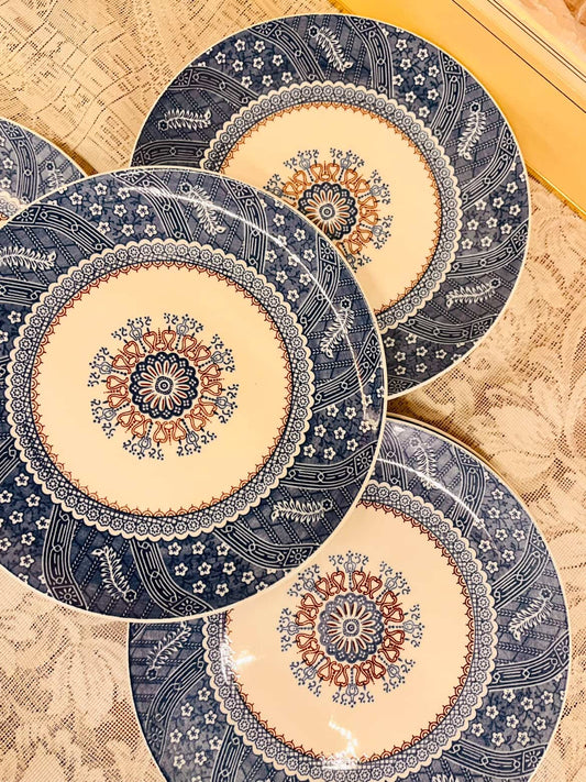 Blue & Cream Mandala Medium Plates – Set of 8