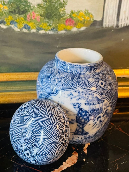 Blue Pottery Ginger Jar with Lid – candy jar - Hand-Painted Design