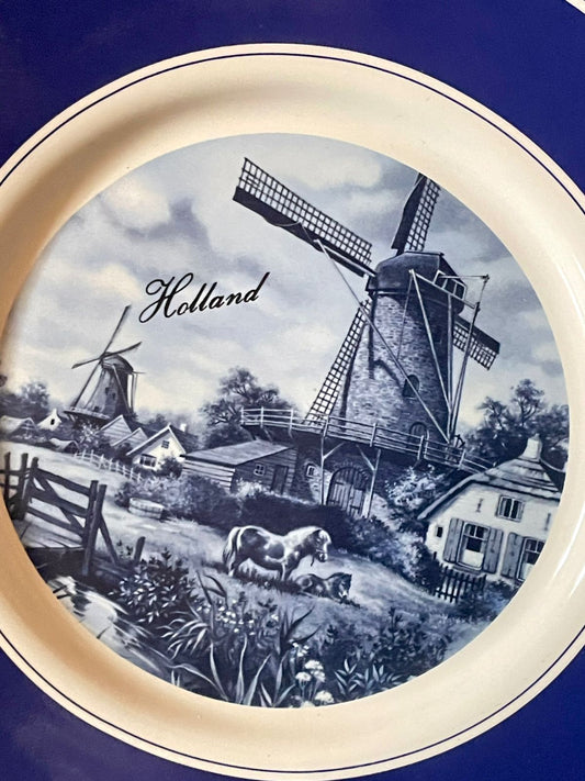 Delft Blue Hand-Decorated Plate 7.5 in– Holland Windmill Scene (1984, T.P. Steege B.V.)