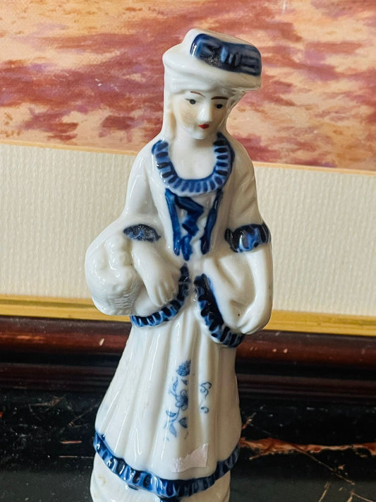 Vintage Porcelain Lady Figurine – Blue & White Regency Style – 6 in