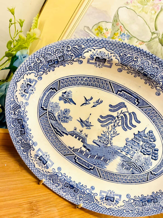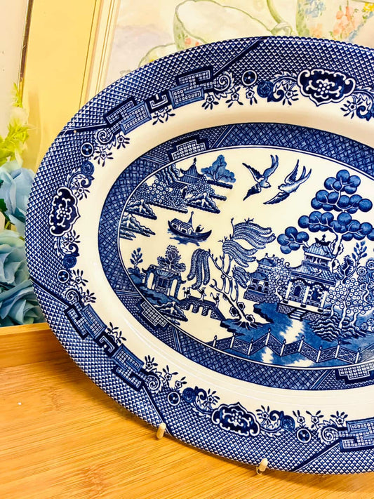 Large Blue Willow Oval Platter – Vintage Porcelain