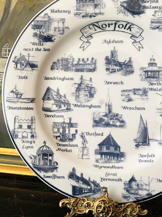 Norfolk England Souvenir Decorative Plate – Blue & White Norfolk Blueware China