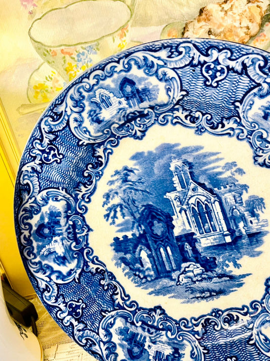 Vintage Blue Transferware Gothic Ruins Decorative Plate – 9in