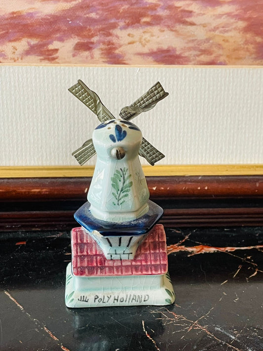 Vintage English Ceramic Windmill Figurine – Hand-Painted Collectible Blue pottery