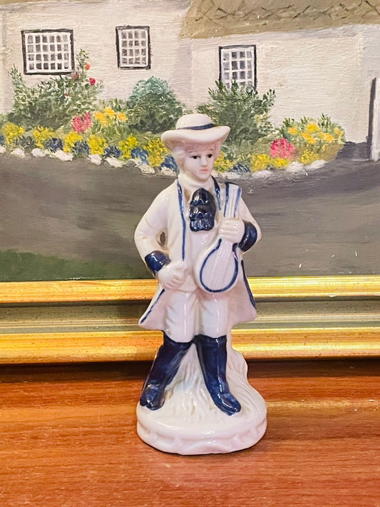 Vintage Porcelain boy Figurine Playing Musical Instrument – Blue Collectible Decor Piece