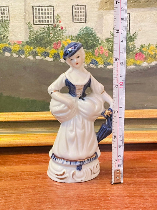 Vintage Porcelain girl Figurine Playing Musical Instrument – Blue Collectible Decor Piece