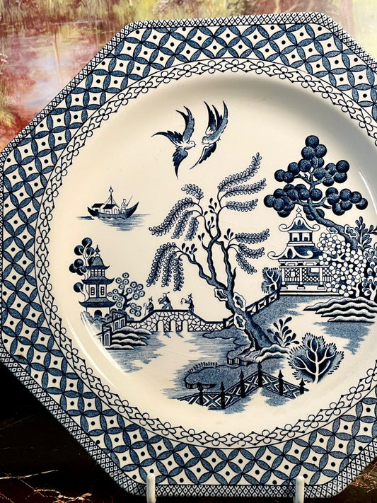 Vintage England Blue Willow Octagon Decorative Plate 9 inches