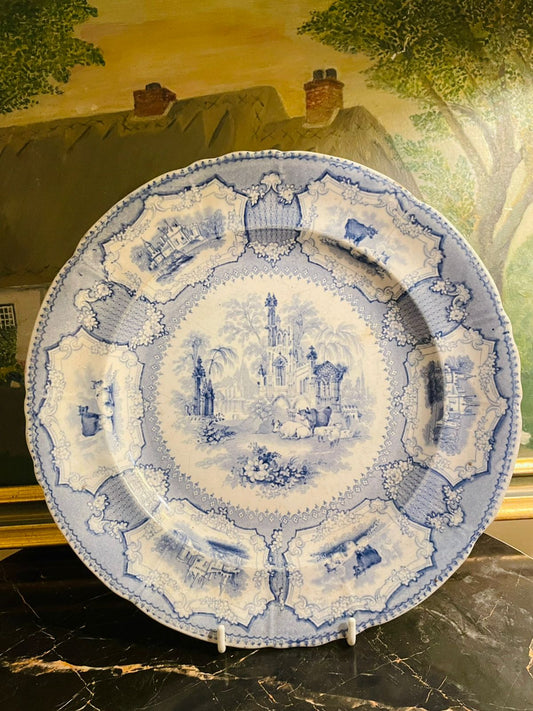 1840s English Blue and White Transfer Earthenware Arcadia Decor Plate 11 inches
