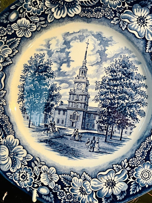 Blue & White Independence Hall Decorative Plate 10in. – England
