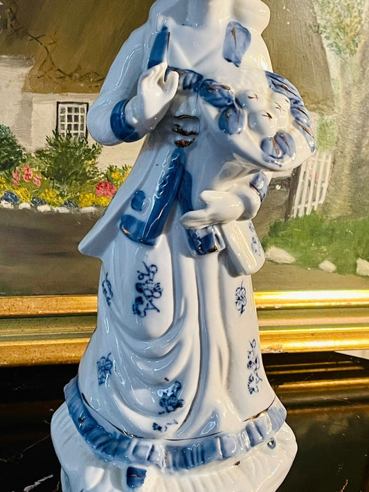 Porcelain Lady Figurine – Blue & White Vintage Style Decorative Statue (30cm)