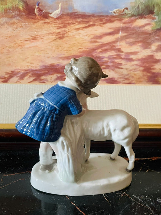 Vintage Porcelain Figurine – Girl Hugging Lamb (England), Home Decor