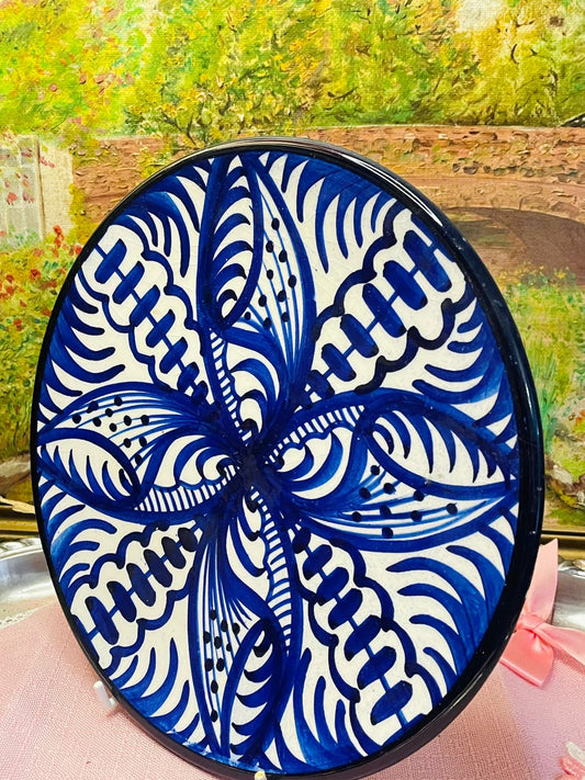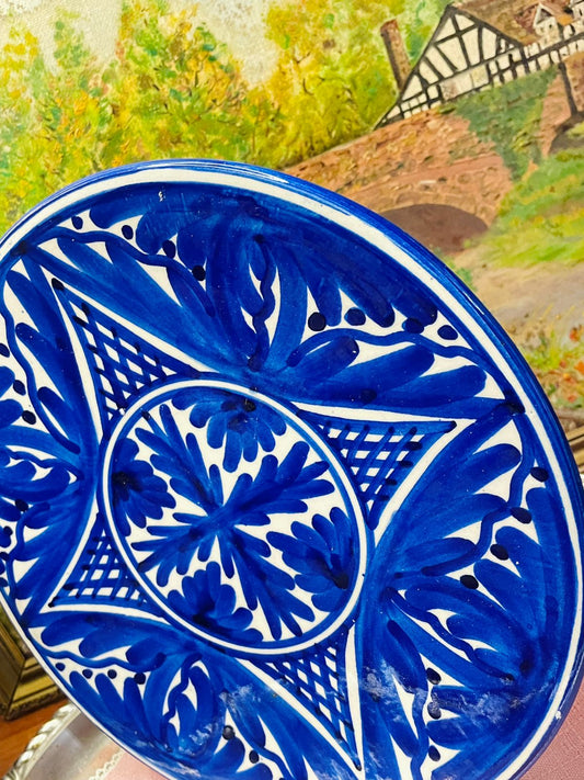 Hand-Painted Blue on White Glazed Ceramic Wall Decor – Traditional Vintage Plate Art