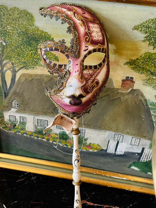 Vintage Venetian Mask – “La Maschera Del Galeone” – – Pink & Gold – Made in Italy
