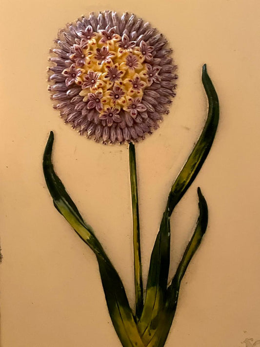 Vintage 3D Floral Wall Plaque – Allium Flower Relief Art (England)