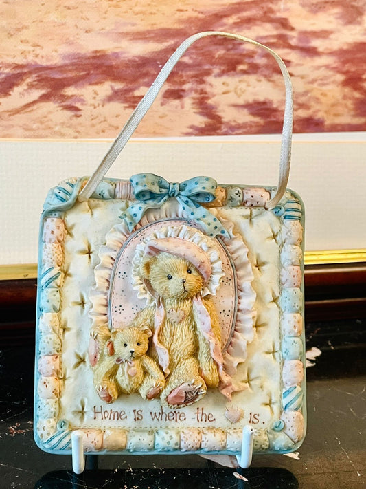 Vintage 1993 Priscilla Hillman Enesco Wall Hanging – Home is Where the Heart Is – Teddy Bear Plaque