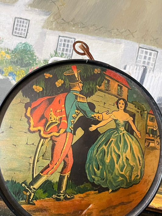 Vintage “Tin Soldier and Ballerina” Wall Plaque – 1950s Lithographed Metal Art – Fairy Tale Decor