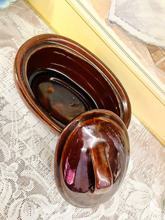 "Vintage Brown Ceramic Covered Dish – Ceramic Casserole with Lid"
