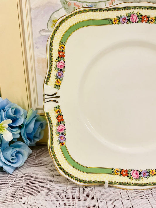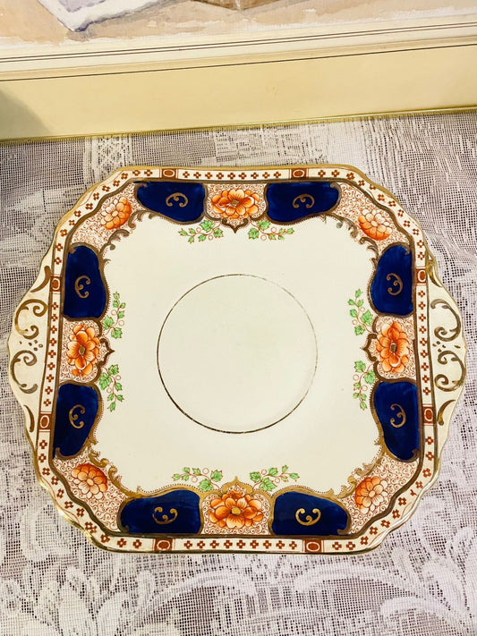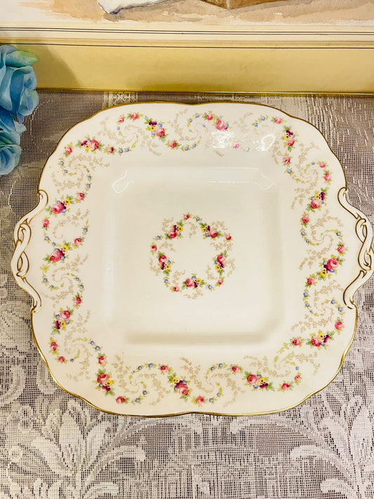 Vintage Tuscan China Cake Platter | English Floral Design | Square Shape