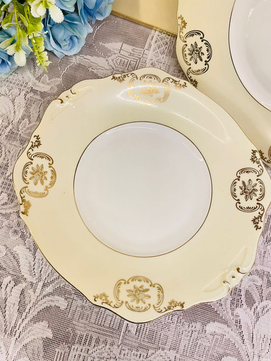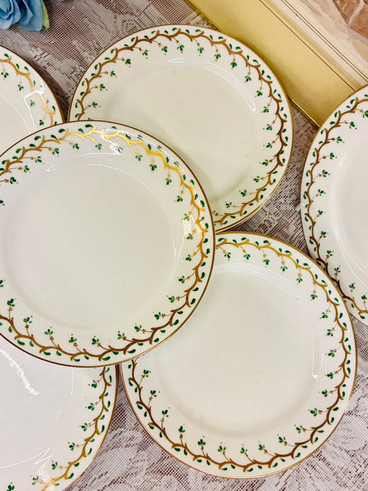 Vintage English Quarter Plates Set of 10 – Green Vine & Gold Trim
