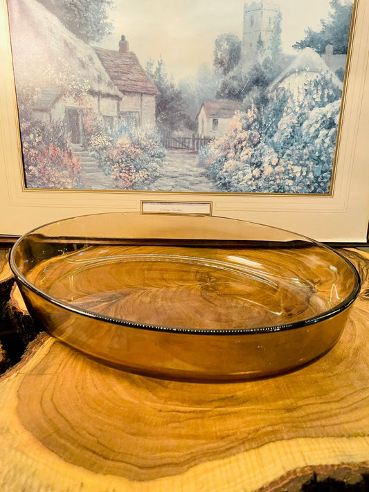 Vintage Amber Glass Large Oval Serving Dish | Oven Safe