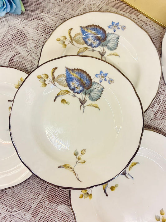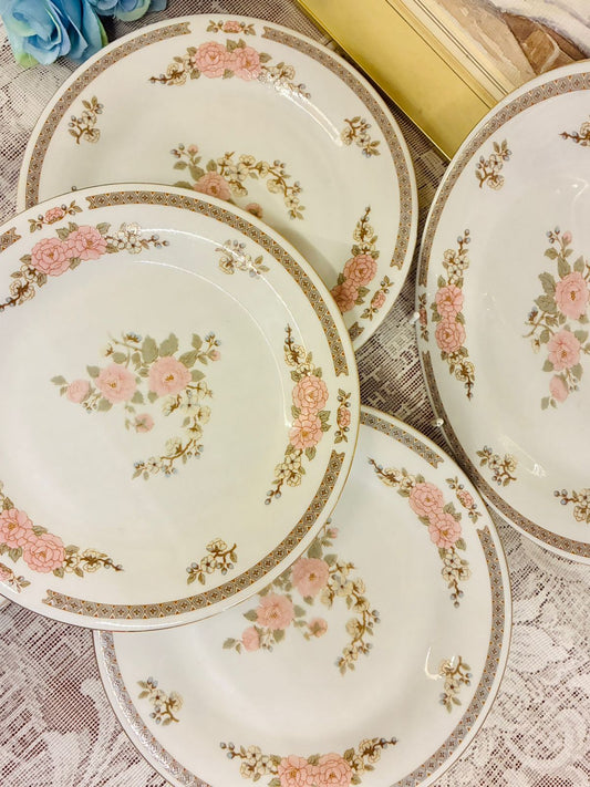 Vintage Floral Quarter Plates Set of 5 – Rustic Cottage Style