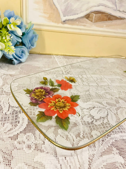 Vintage Floral Glass Decorative Tray – Elegant Serveware for Cottage-Core Decor