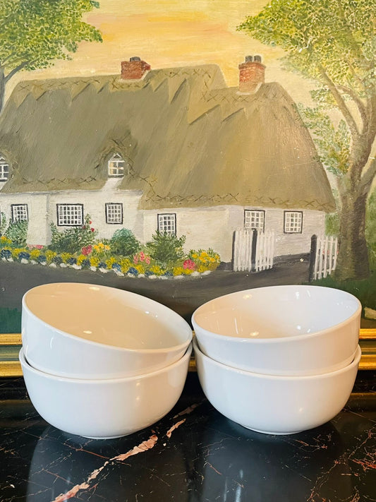 Set of 4 White Ceramic Deep Bowls – 5.5 Inches – Minimalist Modern Style