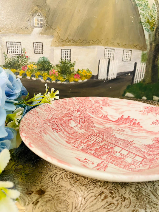 Vintage Red Transferware Deep Plate – Cottagecore Home Decor