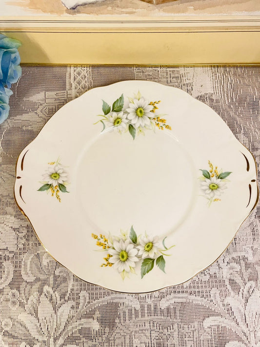 Vintage Duchess Bone China Cake Platter | White Daisy Floral Design | Gold Trim