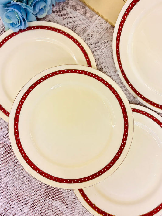 Vintage Red Trim Quarter Plates Set of 4 – Classic English Style