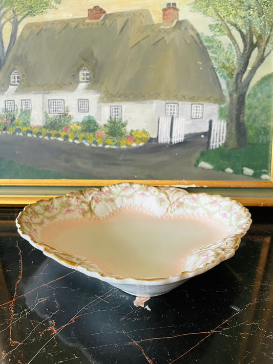 Antique H.B. Limoges France Hand-Painted Floral Serving Bowl – Pink & Gold Scalloped Porcelain