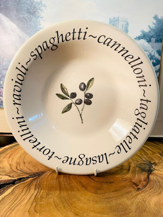 Italian Olive Pasta Plate | Ravenna Cannelloni Spaghetti Plate, Oven Safe