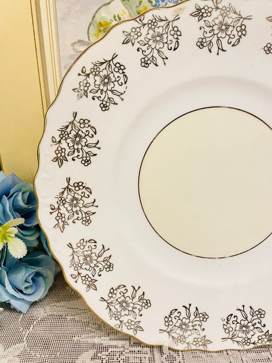 Vintage Floral Cake Platter | Elegant Gold Trim | Made in England