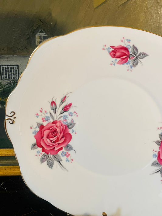 Vintage Duchess England Bone China Cake Plate – Pink Rose Floral Design