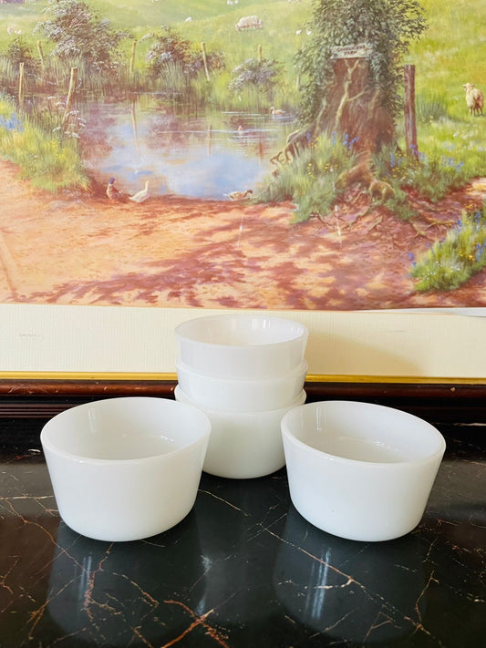 Set of 5 Vintage White Milk Glass Custard Bowls – Minimalist Charm