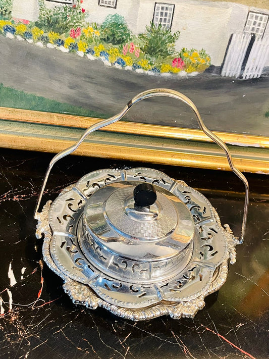 Vintage Silver Plated Covered Serving Dish with Handle – Ornate English Design