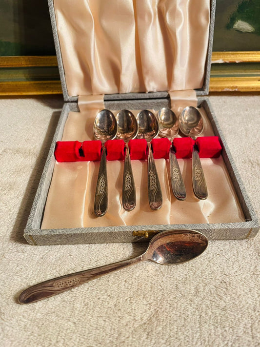 6 Vintage Silver Plated spoons with Original Box – Collectible Cutlery Set