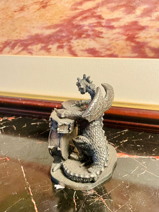 Metal Dragon Drummer Figurine with Crystal Accent – England