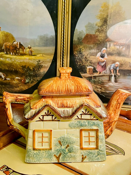 Vintage Cottage House Ceramic Teapot β Collectible Kitchen Decor