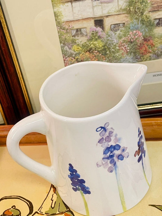 White Floral Ceramic Pitcher β Cottage Style Jug