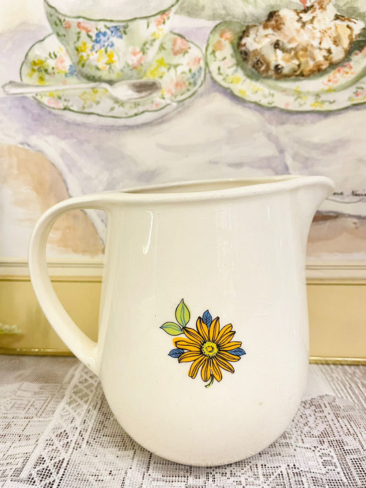 Vintage Floral Ceramic Jug with Blue & Yellow Flowers