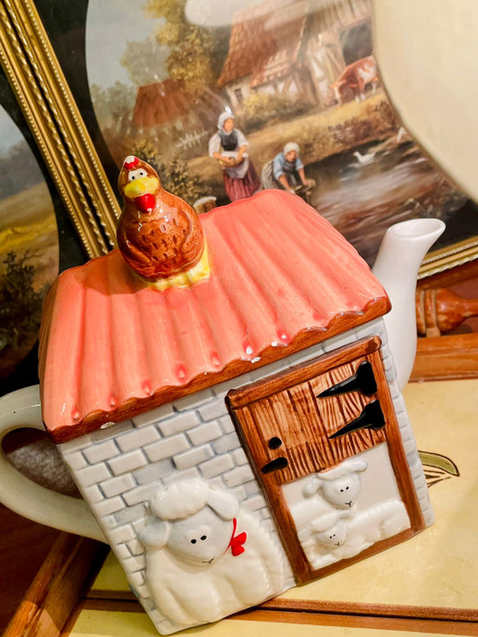 Large Farmhouse Sheep & Chicken Cottage Teapot β Ceramic Kitchen Decor