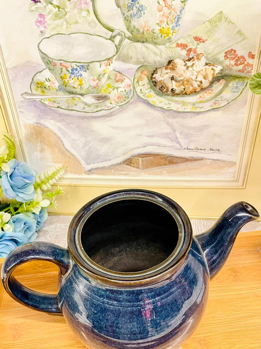 Vintage Blue Ceramic Teapot – Rustic Cottage Pottery