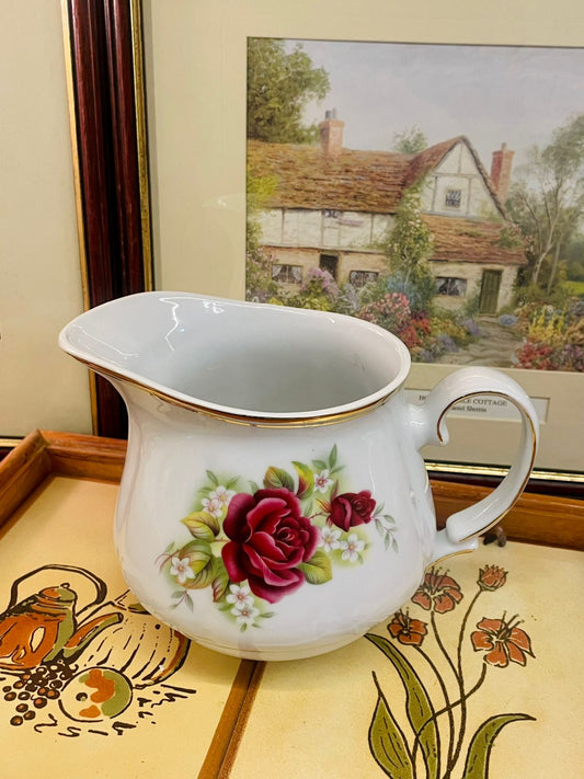 Vintage Rose Floral Ceramic Jug Pitcher Pair β Gold Trim Cottage Decor