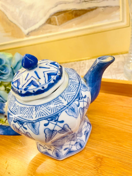 Vintage Blue Floral Porcelain Teapot – Handcrafted