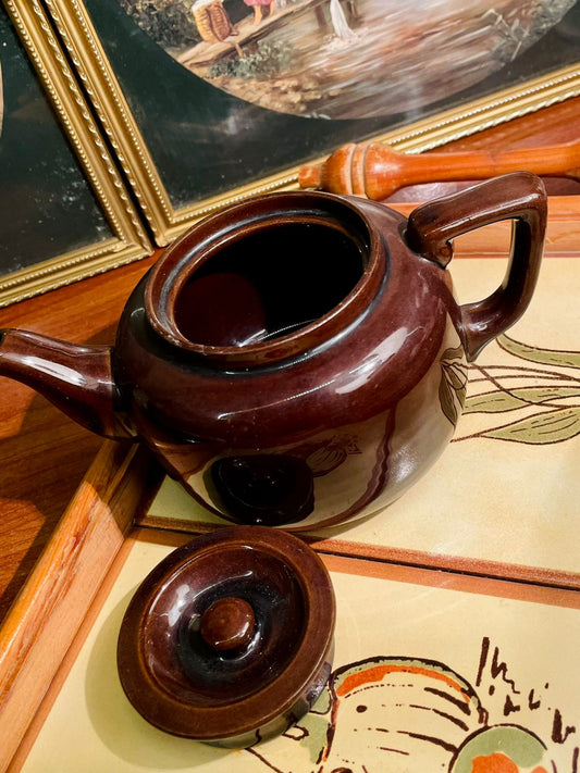 Vintage Brown Glazed Ceramic Teapot β Classic Cottage Kitchen Decor